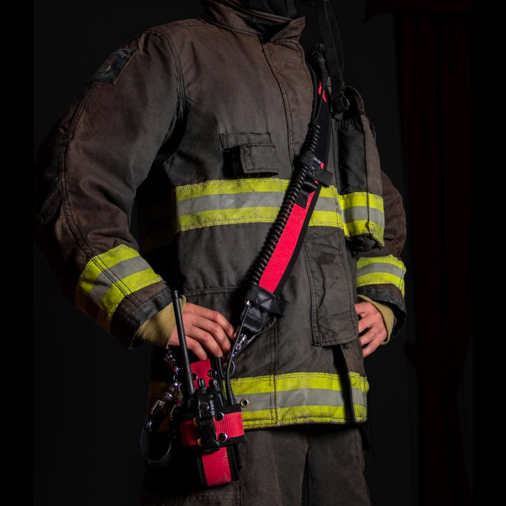 Porta radio Slim, hecho con manguera de bombero reciclada, práctico y resistente.